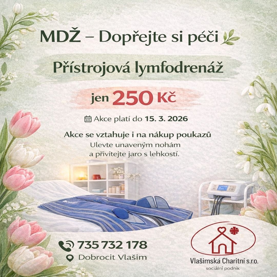 Vlašimská Charitní s.r.o. s potěšením oznamuje spuštění nové služby, která se zaměřuje na zdraví a pohodu našich občanů. Od 21. října 2024 jsou ve Vlašimi k dispozici nové ozdravné procedury v lymfatických kalhotách v prostorách České spořitelny v 1. patře. Tato inovativní metoda je určena pro všechny, kteří chtějí zlepšit svůj zdravotní stav, podpořit lymfatický systém a ulevit si od různých obtíží. Procedura je komfortní a provádí se v příjemném prostředí, což zajišťuje klid a relaxaci během celého procesu. Lymfatické kalhoty pracují na principu kompresní terapie, která pomáhá stimulovat oběh lymfy a odstraňovat toxiny z těla. Tento postup může přispět k úlevě od otoků, celulitidy, zlepšení prokrvení a celkové regeneraci organismu. Pro více informací a rezervaci termínu nás neváhejte kontaktovat na tel. čísle 735 732 178. Těšíme se na Vaši návštěvu a doufáme, že Vám naše nová služba přinese mnoho benefitů pro Vaše zdraví!